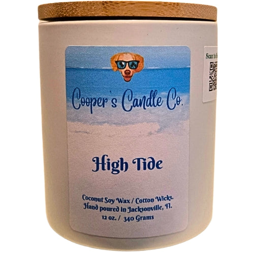 High Tide Scented Candle fresh ozone, citrus, sea salt, evoke the coast.